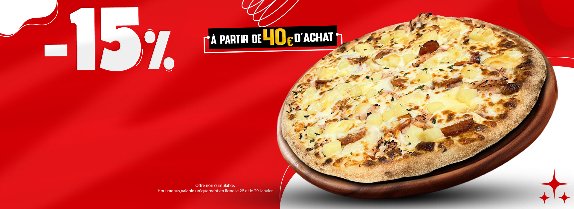 Toutes nos offres, coupons et codes promotionnels ne sont pas cumulables avec les menus, les SMS, les pizzas moitié-moitié ou autres offres en cours.