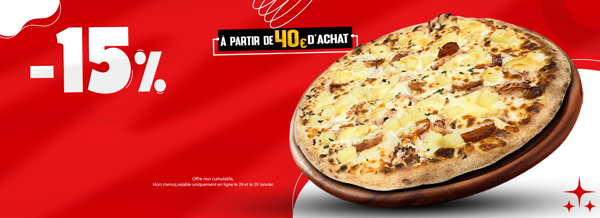 Toutes nos offres, coupons et codes promotionnels ne sont pas cumulables avec les menus, les SMS, les pizzas moitié-moitié ou autres offres en cours.