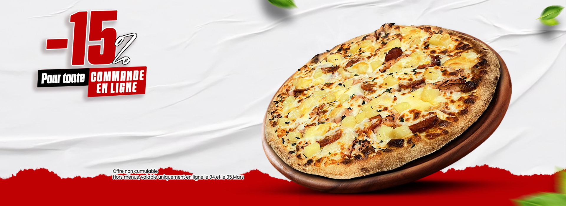 Toutes nos offres, coupons et codes promotionnels ne sont pas cumulables avec les menus, les SMS, les pizzas moitié-moitié ou autres offres en cours.